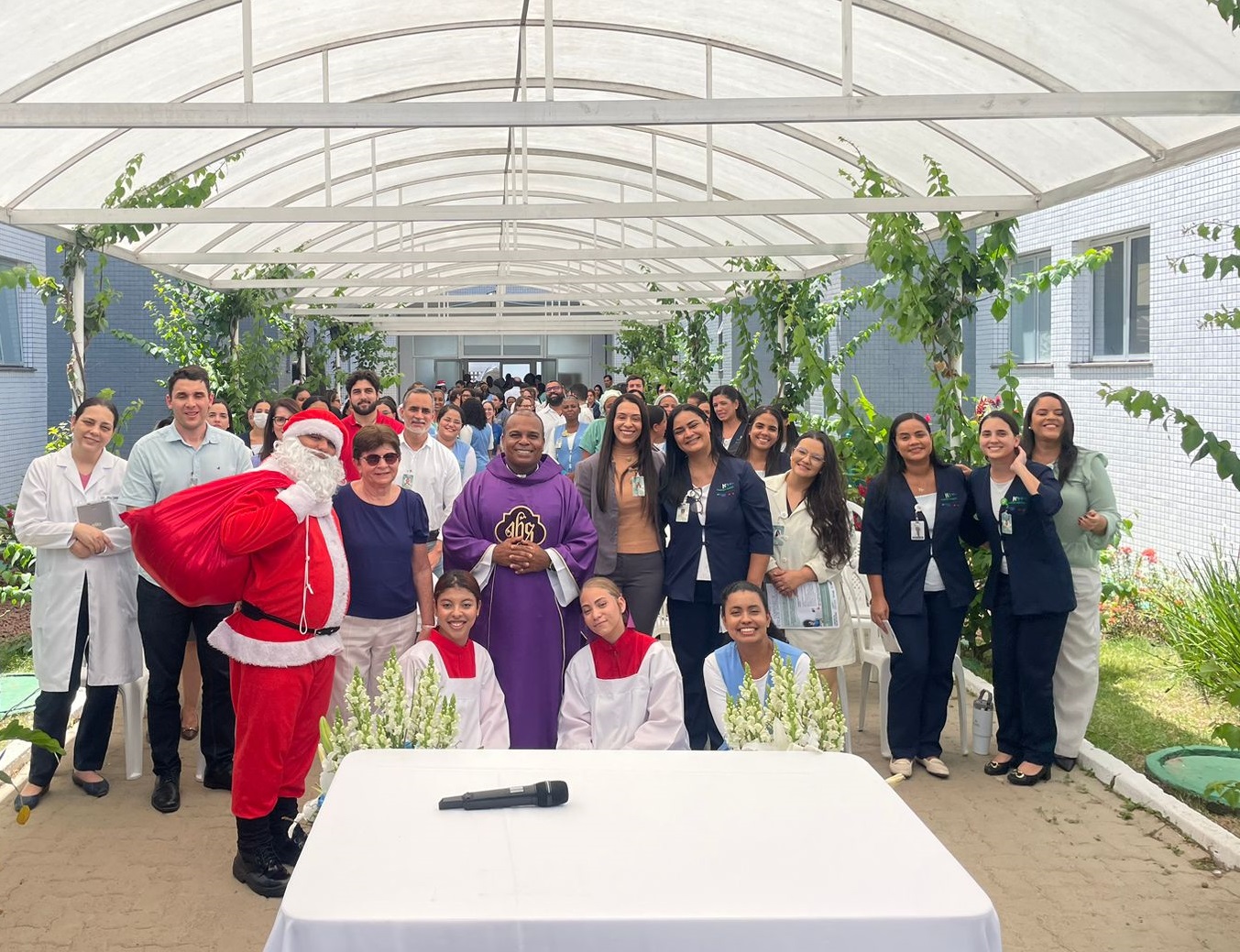 A Missa de Natal do Hospital do Subúrbio (HS) foi celebrada nesta sexta-feira, 19 de dezembro, levando para os profissionais uma mensagem de fé, esperança e uma reflexão sobre virtudes e valores na missão diária de servir ao próximo. O padre Carlos Manuel, vigário da Paróquia Santo Amaro de Jiribatuba, conduziu a celebração no Espaço de Convivência que contou com a presença de colaboradores, pacientes e acompanhantes.
